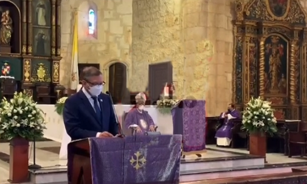 La ceremonia fue oficiada por monseñor Ramón Benito Ángeles, obispo auxiliar de la Arquidiócesis Metropolitana de Santo Domingo, con la presencia de la primera dama, Raquel Arbaje, el ministro de Hacienda, Jochi Vicente y el presidente del Consejo Administración de Refidomsa, el doctor Leonardo Aguilera.