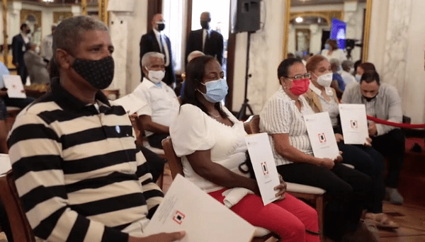 De su parte, el director general de Bienes Nacionales y honorífico del Consejo Estatal del Azúcar, César Cedeño Ávila, precisó que con esta entrega se hace realidad el compromiso del presidente de la República de llevar tranquilidad y alegría a los dominicanos que reciben sus títulos de propiedad.