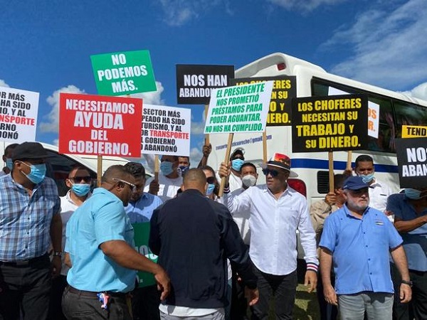 SANTO DOMINGO.- Miembros de la Asociación Dominicana de Transportistas Turísticos, (ADOTRATUR), realizaron hoy una protesta en reclamo de que el Gobierno vaya en su auxilio, debido a que aseguran han quedado en la quiebra por los efectos generados por la pandemia en el sector.