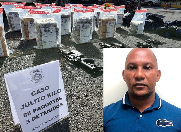 El órgano del sistema de justicia indicó que “Julito Kilo” fue arrestado por fiscales de esta demarcación y agentes de la Dirección Nacional de Control de Drogas (DNCD), durante un allanamiento practicado en una villa de su propiedad localizada en Juan Dolio, donde fue ocupada la droga. Además de las actividades de narcotráfico, está vinculado a varios crímenes.