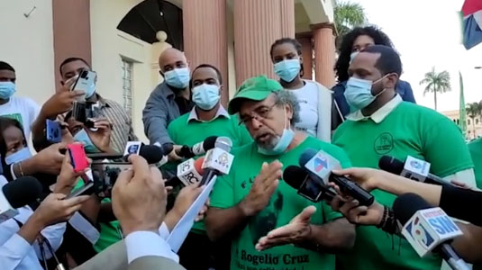 SANTO DOMINGO.- El padre Rogelio Cruz encabezó este miércoles una misa en el campamento ubicado frente el Palacio Nacional, donde un grupo exigen la aprobación de las tres causales del aborto en el Código Penal.