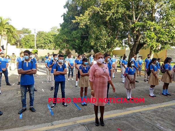 PEDRO BRAND.- El liceo General Gregorio Luperón en este municipio se sumó este lunes al retorno de los estudiantes a las aulas, ahora de manera semipresencial, por causa de la pandemia del covid-19 que aún afecta a nuestro país.