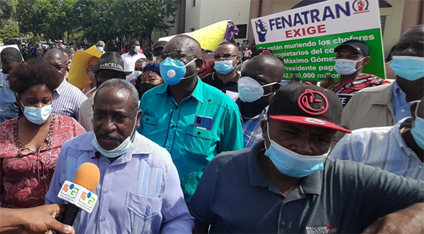 Los choferes pertenecientes a la Federación Nacional de Transporte La Nueva Opción (FENATRANO) se concentraron en la avenida Máximo Gómez casi esquina John F. Kennedy y de ahí marcharon al palacio presidencial.