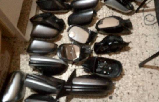 Al ser requisado el automóvil en el que viajaban los apresados, les fueron ocupadas dos cajas de cartón conteniendo en su interior 10 pares de retrovisores de diferentes marcas y colores, dos espejos para retrovisores, tres retrovisores sin espejos, tres bases de retrovisores y cinco caparazones de retrovisores.