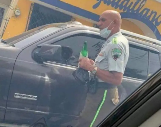 Circula insistentemente en las redes sociales una foto de un policía de tránsito del municipio de Bonao, provincia Monseñor Nouel, donde se ve al oficial uniformado y con una cerveza en la mano, mientras se va a montar en un vehículo.