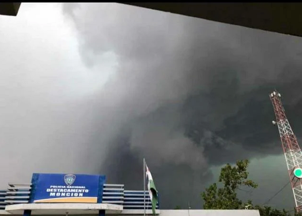 La brisa acompañada de una fuerte lluvia, se produjo la tarde de este sábado sembrando temor y asombro entre los lugareños.