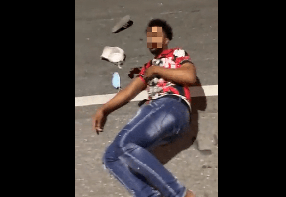 Al lado del joven, quien luce plenamente consciente de lo ocurrido, fue visualizada una arma de fuego, mientras que el agente policial pide que lo grabe.