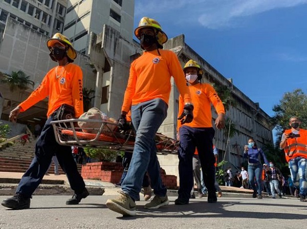 En el ensayo, que tenía como epicentro esta ciudad, participaron más de dos mil voluntarios y miembros de la Defensa Civil, los bomberos, Cruz Roja y otros organismos de rescate.