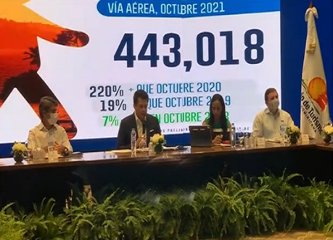 Collado explicó que esto supone la recuperación del 19 % del influjo recibido antes de la pandemia del coronavirus (Covid-19), en octubre 2019 y del 220 % respecto a octubre 2020.