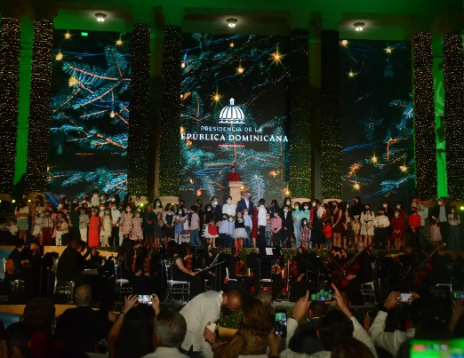 SANTO DOMINGO.- El presidente Luis Abinader, la primera dama, Raquel Arbaje, y la vicepresidenta Raquel Peña, encendieron el árbol de Navidad del Palacio Nacional, en una emotiva y colorida ceremonia en la que se llamó a la unidad nacional y el fortalecimiento de la familia en una noche que el mandatario llamó “de magia y de esperanza”.
