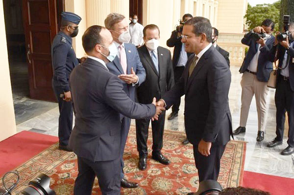 Pierluisi subió las escalinatas de la explanada principal de la casa de Gobierno, donde fue recibido por el ministro Administrativo de la Presidencia, José Ignacio Paliza y el ministro de Relaciones Exteriores, Roberto Álvarez.