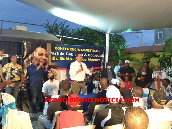 PEDRO BRAND.- El abogado y dirigente político Guido Gómez Mazara presentó este viernes en este municipio su conferencia “Partido, Gobierno y Sociedad”, donde aprovechó para respaldar la exigencia de los compañeros de partidos con empleo dentro de la administración pública.