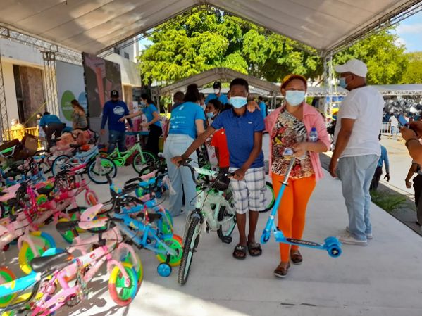 «Estamos entregando bicicletas, patinetas, carros pelotas, muñecas, en un intercambio para que ellos entiendan el valor que tiene el plástico y evitar que ese plástico dañe nuestro medio ambiente, que no llegue ni a la cañada, ni al rio, ni al mar; que se pueda preservar y darle un nuevo uso, que está esa posibilidad y es lo que procuramos», sostuvo.