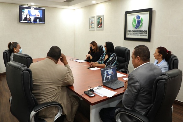 En la reunión vía zoom acompañaron al director de Pro Consumidor, la subdirectora Administrativa, María Teresa Paulino; el encargado del Departamento de Buenas Prácticas Comerciales, Carlos Pérez; la encargada de la Consultoría jurídica, Johanna Calderón; la encargada de Cooperación Internacional y Seguridad de Productos, Milagros de la Cruz, y la encargada del Departamento de Análisis de Publicidad y Precios, Yeshica Peguero.