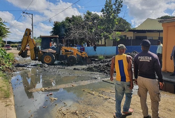 Una brigada con una retro pala para iniciar las labores de saneamiento de todo el entorno se presentó al lugar y posteriormente el alcalde Abel Martínez, que junto a la vice alcaldesa Leonela Massiel Espinal dirigió los trabajos.