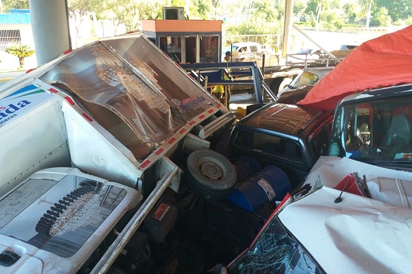 Según versiones el accidente ocurrió cuando un camión perdió los frenos, chocando otros dos vehículos y fueron parar con la estación de peaje.