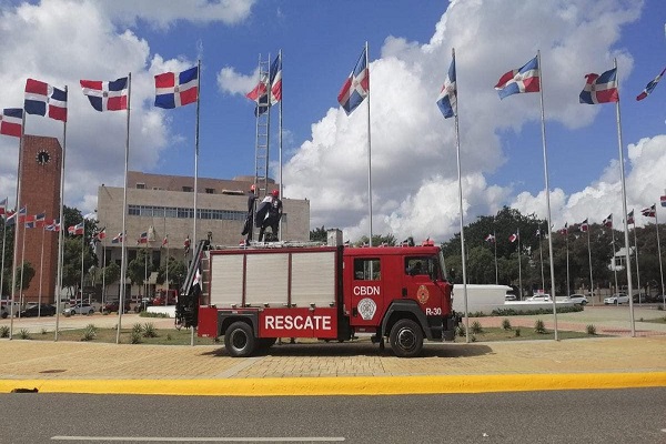 SANTO DOMINGO.- A seis días de celebrarse el 178 aniversario de la Independencia Nacional y la rendición de cuentas, unidades del Cuerpo de Bomberos del Distrito Nacional inician el desmonte de las banderas en malas condiciones en todo el entorno del Congreso Nacional.