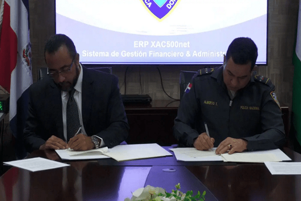 SANTO DOMINGO.- La Policía Nacional, representada por su director mayor general Eduardo Alberto Then, firmó un acuerdo con la compañía 7TECHNET, asistida por su presidente Alberto Julián Calcaño, el cual permitirá a la institución del orden recibir en calidad de donación, la implementación y operación de un Software (sistema tecnológico) que permitirá fortalecer los procesos de información y control administrativo-financiero y operacional.