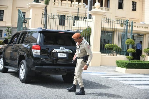 Al llegar a la casa de gobierno un equipo de prensa pudo constatar que el agente de turno del Cuerpo de Seguridad Presidencial (CUSEP) hizo parada al vehículo que los transportaba, para observar los que iban a bordo y también el interior.