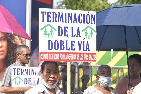 A la protesta se sumaron residentes en los Tres Brazos, Santo Domingo Este, barrio cuyos terrenos se encuentran en un proceso judicial y de los que exigen le sean entregados títulos de propiedad.