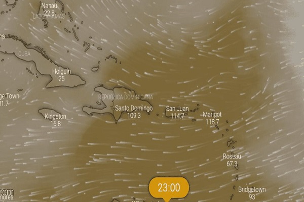 SANTO DOMINGO.- Una gran masa de polvo del Sahara se dirige hacia la República Dominicana. Llegará al país a primeras horas del lunes por la zona Este y en la tarde estará prácticamente en medio del país.