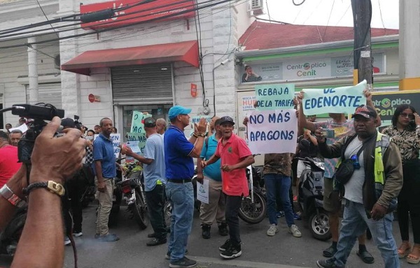 MOCA.- Decenas de personas se manifestaron este jueves frente a las oficinas principales de la Empresa Distribuidora de Electricidad del Norte (Edenorte), en los municipios Moca y San Francisco de Macorís, en rechazo al aumento “abusivo” y “desproporcionado” aplicado a la tarifa eléctrica.