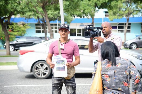 Hombre se encadena frente a la Pepca denunciando supuesta mafia con terrenos en Bonao