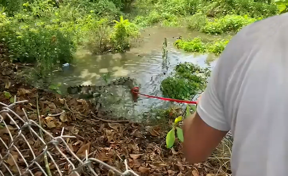 Técnicos del Ministerio de Medio Ambiente y Recursos Naturales lograron atrapar el ejemplar en la laguna donde habitaba en la parte trasera de una vivienda en la referida localidad.