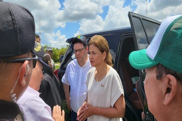 LA ALTAGRACIA.- La vicepresidenta de la República, Raquel Peña participó en el operativo que encabezó el director general de Aduanas, Eduardo –Yayo– Sanz Lovatón, junto al alcalde de La Altagracia, Rafael Cholitín Barón Duluc, en la entrega de materiales de construcción, ropa y alimentos, a las familias más afectadas por el paso del huracán Fiona.