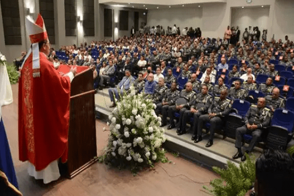 La misa fue oficiada por monseñor Santiago Rodríguez Rodríguez, obispo de la arquidiócesis de San Pedro de Macorís, quien apeló por el respeto mutuo de los civiles y los policías para que el trabajo sea más ligero para el bienestar del desarrollo del país.