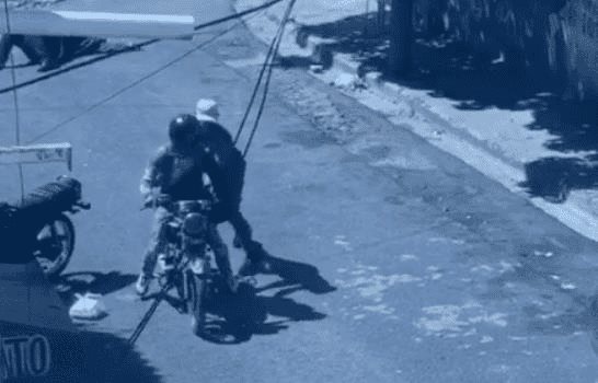 SANTO DOMINGO.- Un video que ha circulado en redes sociales muestra cuando dos delincuentes a bordo de una motocicleta matan a tiros a un hombre en Los Mameyes, en el municipio Santo Domingo Este, y le roban un arma de fuego que tenía consigo.