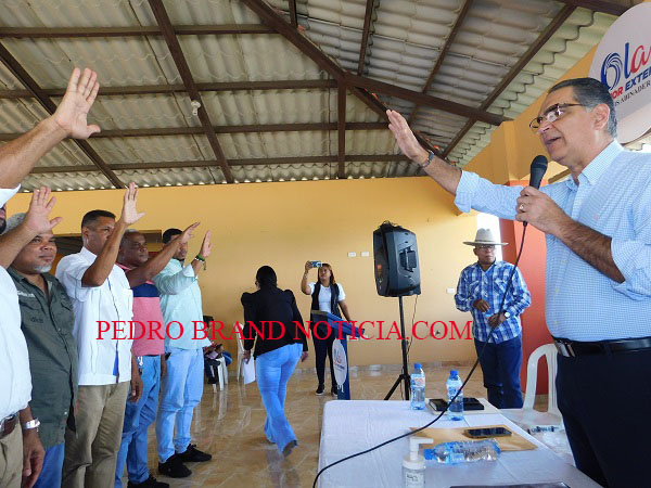 PEDRO BRAND.- El coordinador nacional de Ola Sector Externo con Luís Abinader, doctor Santiago Hazim, juramentó este domingo al presidente del Bloque Institucional Socialdemócrata (BIS) en Pedro Brand, Javier Paula, junto a otros altos dirigentes locales y militantes de ese partido.