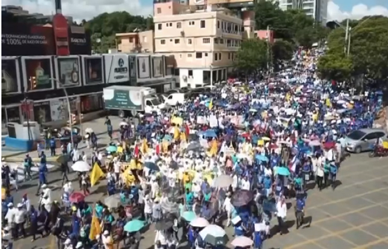 La marcha que tiene como destino final el Congreso Nacional fue convocada en demanda primordial de una nueva Ley de Seguridad Social, la eliminación de las Administradoras de Riesgos de Salud (ARS) y las Administradoras de Fondos de Pensiones (AFP).