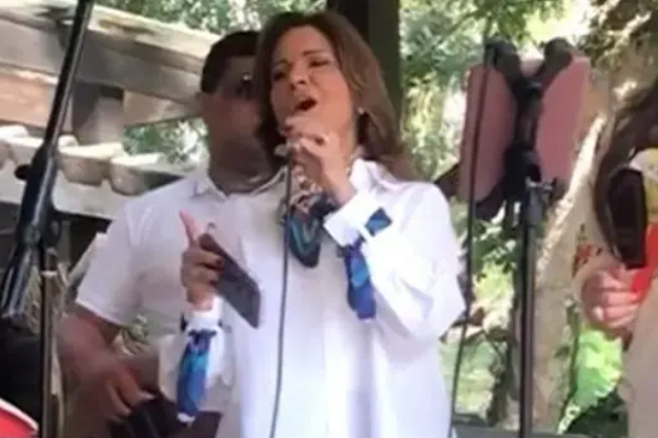 En el audiovisual de 33 segundos que es muy popular en las plataformas digitales, la miembro del Comité Político del Partido de la Liberación Dominicana (PLD), sale acompañada de otras personas que parecen ser de una orquesta.