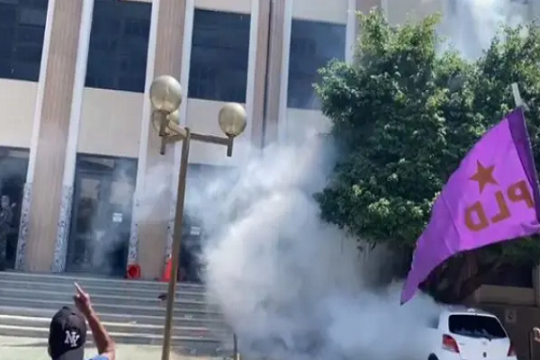 Según lo informado, el incidente se produjo cuando los simpatizantes del partido morado trataron de penetrar al Palacio de Justicia, donde se encuentran los imputados en la supuesta estructura de corrupción a espera de que un juez le conozca solicitud de medidas de coerción.