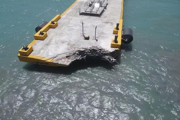 La embarcación Dynamic Stryder impactó la parte frontal de la estructura, causando daños a uno de los extremos de la misma.