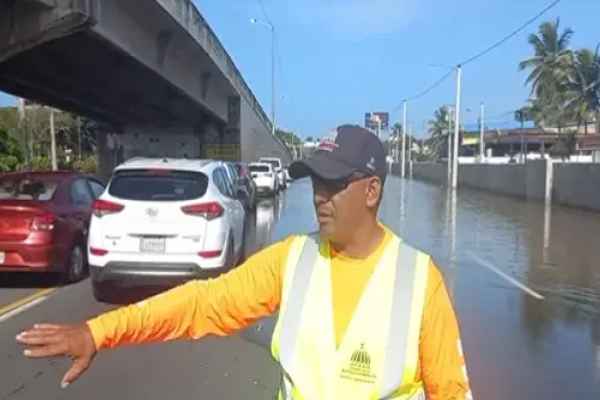 SANTO DOMINGO.- Un gran charco de agua que hizo como consecuencia de las lluvias caídas debido a la incidencia de una vaguada sobre el territorio nacional, ha complicado el tránsito por la avenida Las Américas.