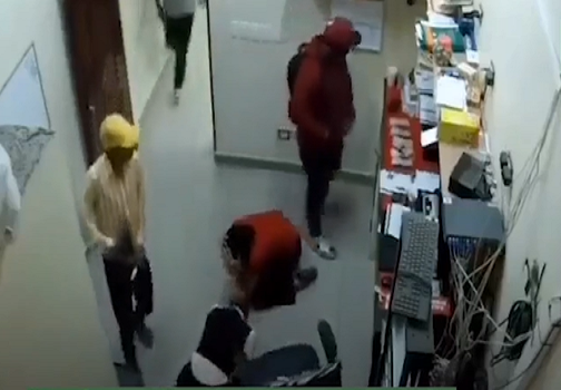 “¡Acuéstate!”, le ordena uno de los asaltantes a una de las damas, mientras la empuja hacia el suelo por la cabeza. Este usaba un abrigo rojo con capucha y una gorra del mismo color. En su espalda cargaba una mochila negra que abrió de inmediato para llenarla de dinero con la ayuda de un segundo, que vestía poloché gris, pantalón negro y lentes oscuros, mientras le ordenó a uno de sus compañeros de fechoría cortar con un cuchillo que cargaban unos cables, que, al parecer, entendían eran de las cámaras de seguridad.