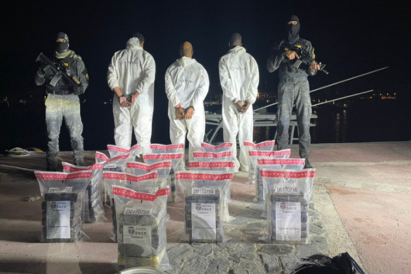 Luego de iniciada la operación, equipos tácticos y de reacción interceptaron a varias millas náuticas al sur de Alto Velo, de la referida provincia, a tres individuos a bordo de la embarcación, en cuyo interior se ocuparon varios sacos conteniendo los paquetes de la droga.