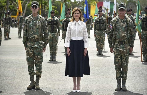 SANTO DOMINGO.- La vicepresidenta de la República, Raquel Peña; el ministro de Defensa, teniente general Carlos Luciano Díaz Morfa, y el comandante del Ejército, mayor general Carlos Antonio Fernández Onofre, encabezaron el martes la graduación de 1,300 soldados pertenecientes a la quinta promoción de conscriptos 2022 y primera promoción del 2023 de esa institución.