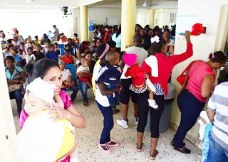 Al recorrer varios hospitales de Santo Domingo, la presencia de los niños en las salas de espera o a las afueras de las unidades de emergencia, acompañados por sus padres o tutores, continúa siendo concurrida y visible en los centros médicos.