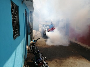 El equipo de la DGDC recorrió los sectores de Villa Feliz, Wilmor, La Mezcla, El Millón, entre otros barrios y comunidades populares, donde fueron fumigados los patios y callejones para eliminar el mosquito Aedes aegypti, que produce el dengue.