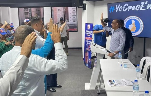 SANTO DOMINGO.- El secretario nacional de organización del Partido Revolucionario Moderno (PRM), Deligne Ascención, juramentó este sábado a cientos de dirigentes a nivel nacional que renunciaron del Partido Quisqueyano Demócrata Cristiano (PQDC), y formaron el Movimiento de Integración por el Cambio (MICA), para apoyar a los candidatos del partido oficialistas y al presidente Luis Abinader.
