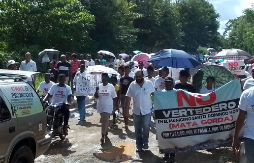SANTO DOMINGO.- Moradores en el sector Mata Gorda en Santo Domingo Norte, realización una manifestaron contra la instalación en su zona de un relleno sanitario, debido que afectaría más de mil 200 familias que residen en esta demarcación.
