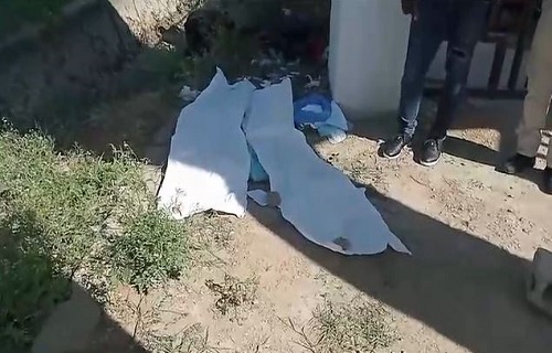 En un video obtenido, se muestra a los infante envueltos en lo que aparenta ser paños desechables para cama de hospitales, y tirados en la entrada del campo santo.