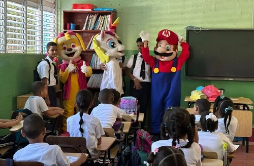 Este martes, se sintió la alegría de retornar a las aulas en un ambiente amenizado por personajes animados que le dieron la bienvenida a los alumnos del plantel, ubicado en la avenida Cayetano Germosen con Luperón en el sector El Pedregal.