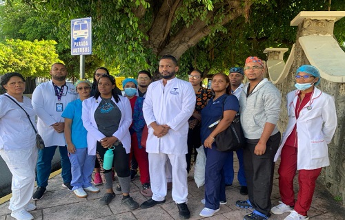 «Estamos reclamando el derecho que tenemos por ley como personas que tenemos familia. Tenemos tres meses sin cobrar un solo peso y viniendo a trabajar día tras día al hospital, sacrificándonos por nuestros pacientes… en donde muchos de nosotros no tenemos ni siquiera seguro médico», dijo Peña.