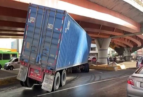 El video que se hizo viral la mañana de este sábado, se observa como la patana quedó con parte de sus gomas traseras levantadas, mientras el conductor intentaba dar reversa para salir del atasco.