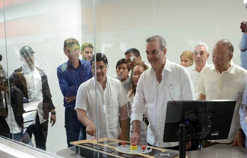 SANTIAGO.- Luis Abinader pulsó ayer el botón del encendido de prueba de la línea uno del Teleférico de Santiago, desde el control de operaciones localizado en el edificio de la Estación Central, ubicado en la avenida Las Carreras, donde el mandatario pudo apreciar el avance de la infraestructura.