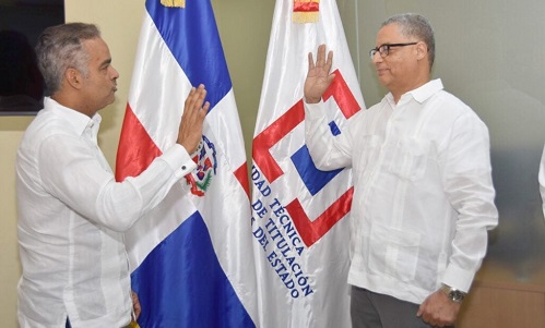SANTO DOMINGO.- El ministro de la Presidencia, Joel Santos Echavarría, juramentó a Marino Esteban Vílchez Sánchez, como nuevo subdirector para la región sur de la Unidad Técnica Ejecutora de Titulación de Terrenos del Estado (UTECT), designado mediante el decreto 624-23 por el presidente Luis Abinader.